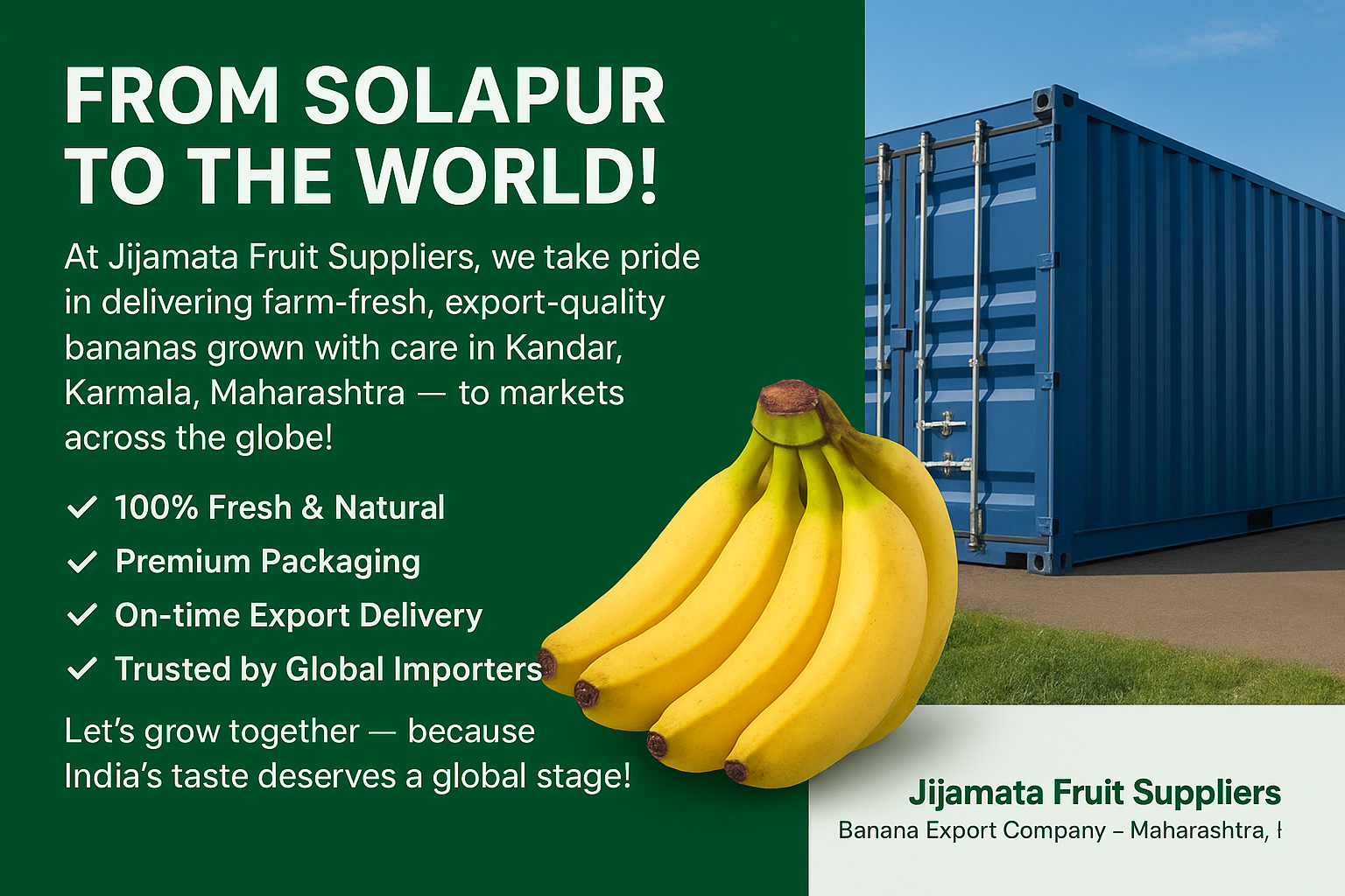 At Jijamata Fruit Suppliers, we take pride in delivering farm-fresh, export-quality bananas grown with care in Kandar, Karmala, Maharashtra β to markets across the globe! πΏ